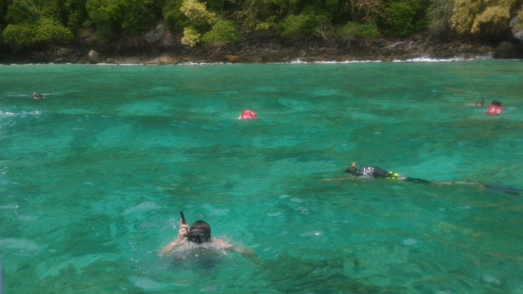 Dia 6 Hoje o dia passou a correr. Fizemos um dia de atividades (como dissemos que íamos tentar arranjar no artigo do 5o dia). Uma das muitas empresas de turismo, aqui de Phuket, disponibilizou um minibus que nos veio buscar ao hotel logo pelas 7h30 da manha. O destino era o cais situado nos arredores de Phuket (viagem de 1 hora), para que depois, aí sim, pudéssemos iniciar a tour. À chegada do cais recebemos o material de snorkeling...