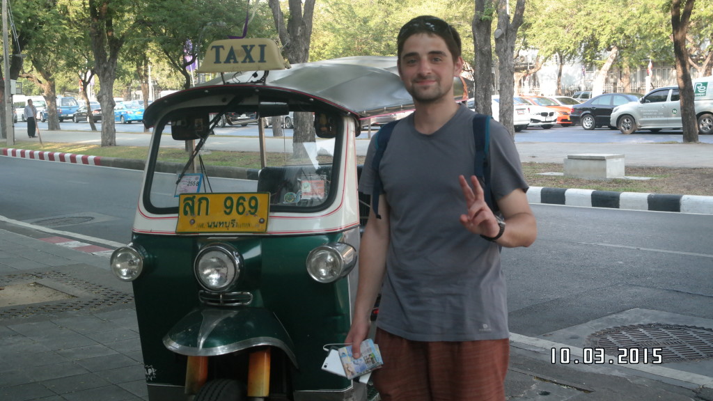 Como tal, fizemos o que tínhamos lido sobre este assunto. Fizemos sinal a um tuk tuk que estava em andamento e o motorista lá parou para começar o negociar os preços, mediante a localização que pretendíamos. Neste aspeto é importante manter sempre um sorriso, pois não queremos criar chatices com ninguém e por isso lá começámos por perguntar qual a tarifa ate à rua Khao San. Ele disse 150 BHT, cerca de 4,2 euros, e nós pedimos 50 BHT. Ele não gostou muito da ideia e pediu 100 BHT. Nesta altura, como o João diz, já estava ele a negociar com o motorista e comigo, pois eu aceito sempre qualquer preço porque fico sempre a pensar que eles ficam a perder, o que não é de todo verdade. Pois bem, depois de regatearmos lá conseguimos pagar 60 BHT. Uma experiência que aconselhamos todos a experimentar se tiverem oportunidade, vale a pena.