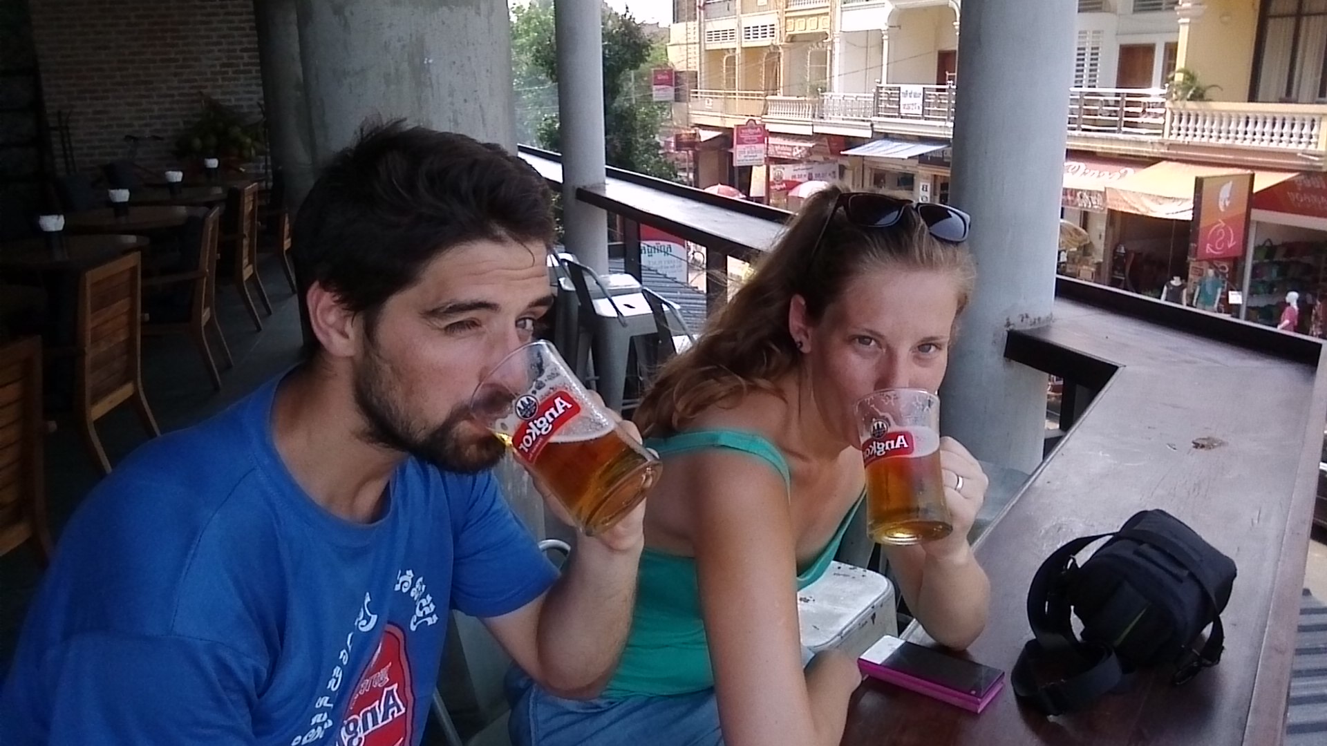 No final, fomos relaxar um pouco para um bar onde aproveitámos promoção da cerveja Angkor.