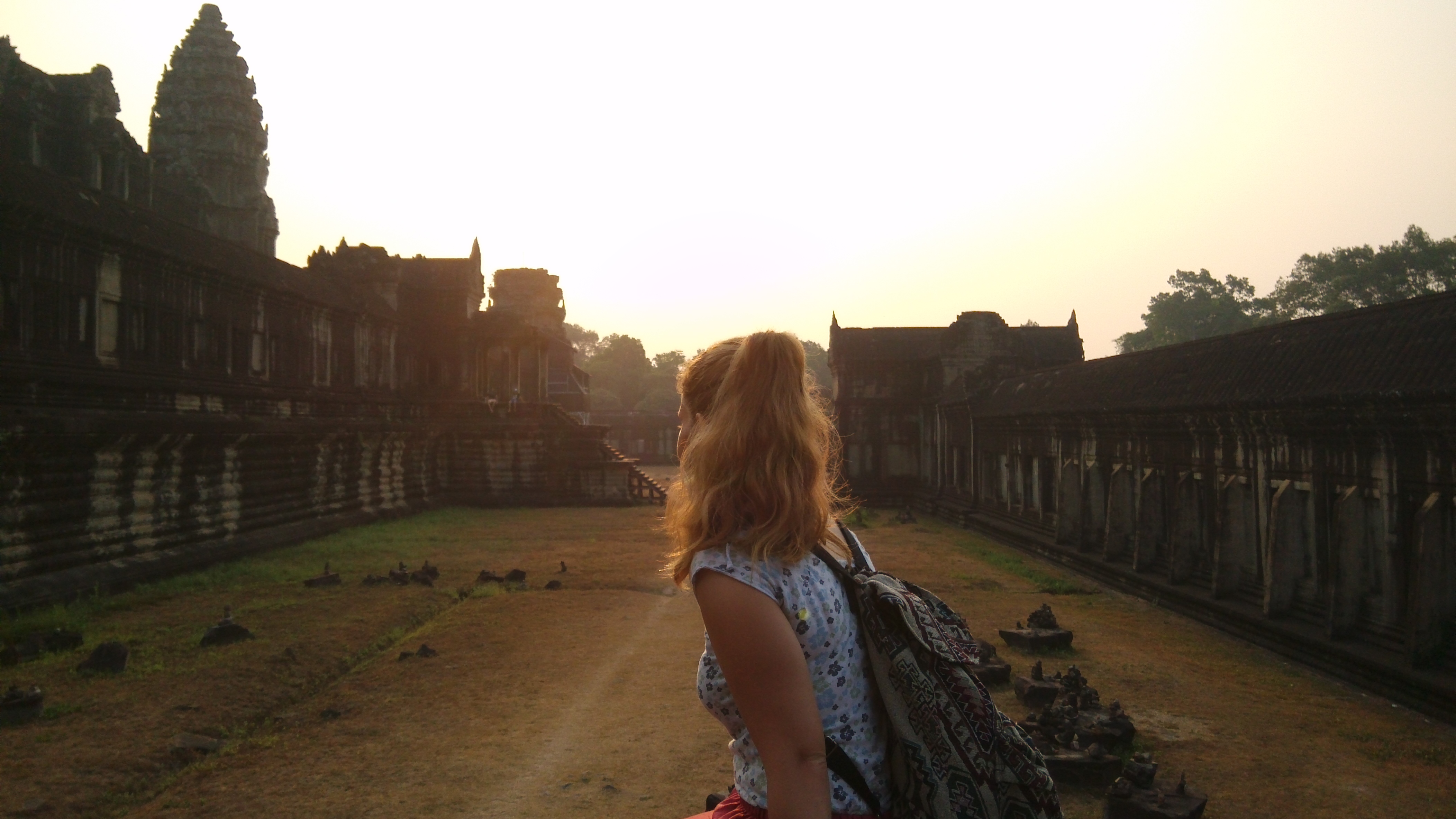Desta feita, às cinco da manha lá fomos nos de tuk tuk ate Angkor Wat. Foi algo mesmo bonito de se presenciar, ver o sol a nascer entre o monumento. Depois disso, la tivemos a explorar melhor essa zona. O Angkor Wat e o templo mais bem preservado do complexo de Angkor. Inicialmente este estava relacionado com a religião Hindu e depois com o Budismo. Realmente e algo magnifico de se ver.